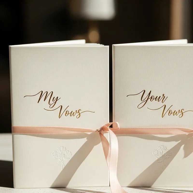 Help the couple preserve their heartfelt promises with beautifully crafted custom wedding vow books that become instant family heirlooms. Choose matching sets in materials like leather, linen, or handmade paper that complement their wedding aesthetic and personal style. Have their names, wedding date, or meaningful quotes embossed on the covers in gold or silver foiling for an elegant touch. These books serve a practical purpose on the wedding day, providing a beautiful vessel for their written vows during the ceremony. After the wedding, they transform into cherished keepsakes the couple can revisit on anniversaries or whenever they need a reminder of their promises. Include a special box or display stand so they can showcase these meaningful books in their home, creating a constant visual reminder of their commitment to each other.