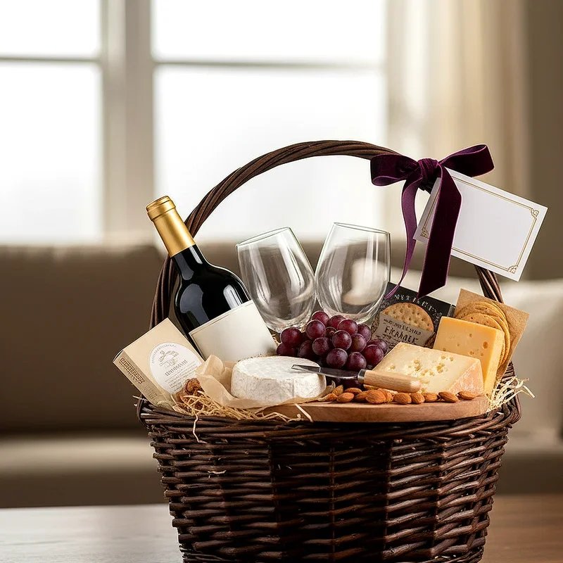Elevate someone's birthday with an elegant wine and cheese pairing basket that exudes sophistication. Select a quality bottle of red or white wine based on their preferences, or include both for variety. Add an assortment of artisan cheeses ranging from sharp cheddars to creamy bries and tangy blue cheeses. Include crackers, dried fruits, nuts, and perhaps some gourmet jam or honey for perfect pairings. Add wine accessories like a corkscrew, wine stopper, or aerator to enhance their tasting experience. Consider including a cheese board with serving knives for elegant presentation. This basket is ideal for wine connoisseurs, foodies, or anyone who appreciates refined flavors. It's perfect for celebrating milestones with class and taste.