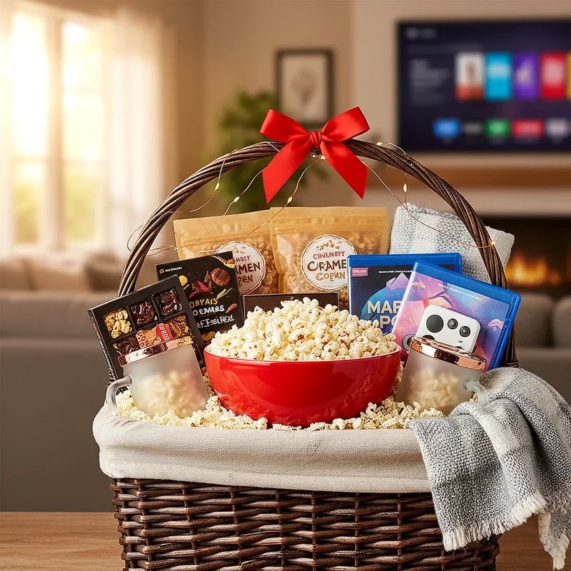 Transform someone's living room into a private cinema with this entertainment-focused basket. Start with classic movie theater snacks like buttered popcorn, candy boxes, and nachos with cheese sauce. Add streaming service gift cards so they can choose their favorite films or discover new ones. Include a cozy blanket and some fun movie-themed items like director's clapboard coasters or film reel decorations. Consider adding a selection of classic DVDs or Blu-rays if you know their favorite genres. Throw in some gourmet hot chocolate or specialty sodas to complete the concession stand experience. This basket is perfect for homebodies, film enthusiasts, or anyone who appreciates a cozy night in. It encourages quality time with loved ones or peaceful solo relaxation.