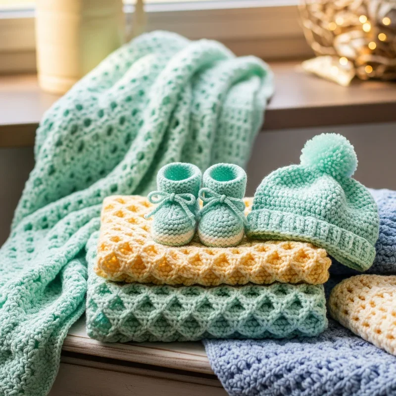 Is there anything sweeter than tiny crochet booties on tiny baby feet? Baby items make perfect crochet gifts because new parents always appreciate handmade treasures for their little ones. From delicate christening gowns to playful rompers, you can create entire wardrobes of adorable outfits. Soft, hypoallergenic yarns ensure comfort against sensitive baby skin. Consider making practical items like bibs, burp cloths, or sleep sacks that parents will use daily. Crochet rattles and teething rings provide safe, washable toys for curious babies to explore. You can personalize blankets with baby's name or birthdate for extra special keepsakes. These heartfelt gifts often become cherished mementos that parents save long after baby outgrows them, making your time and effort truly worthwhile.