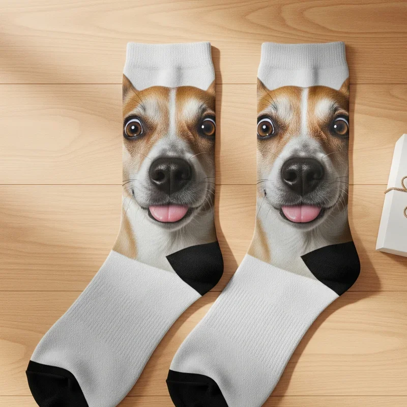 Turn someone's love for their pet into wearable art with custom socks featuring their furry friend's face printed all over them in hilarious repeating patterns. These socks use high-quality printing technology to transfer pet photos onto comfortable, durable fabric that maintains the image clarity even after multiple washes. Pet parents absolutely lose their minds over these, often ordering multiple pairs to wear on different days or to give as gifts to fellow pet lovers. The process is simple: upload a photo of the pet, and receive socks that transform feet into a walking tribute to their beloved animal companion. The socks come in various styles including crew, ankle, and knee-high options, with some companies even offering matching sets for humans and their pets. Beyond the initial laugh, people genuinely love wearing these socks as conversation starters and comfort items that remind them of their pets throughout the day.