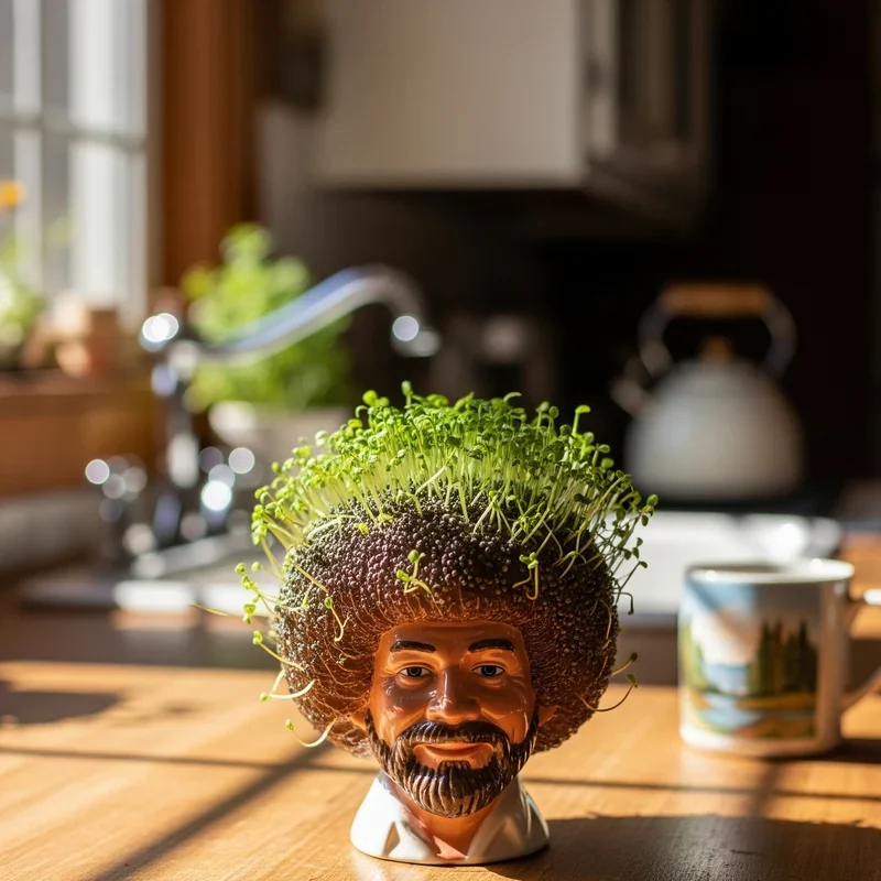 Combine nostalgia, humor, and gardening in one delightful package with this Chia Pet featuring the beloved painter Bob Ross, complete with his iconic afro made entirely of chia sprouts. The terracotta planter is sculpted to look like Ross's smiling face, and when the chia seeds grow, they create his legendary hairstyle in living green glory. It's a gift that keeps on giving as recipients enjoy the process of growing their own "happy little trees" right on Bob's head while being reminded of his calming presence. The kit includes everything needed to get started: the planter, chia seeds, growing instructions, and even some Bob Ross quotes to inspire your gardening journey. People who receive this gift often report that caring for their Bob Ross Chia Pet becomes a surprisingly therapeutic daily ritual that brings genuine joy. After the chia grows fully, it can be trimmed and styled, allowing for creative grooming sessions that Bob himself would probably find amusing.