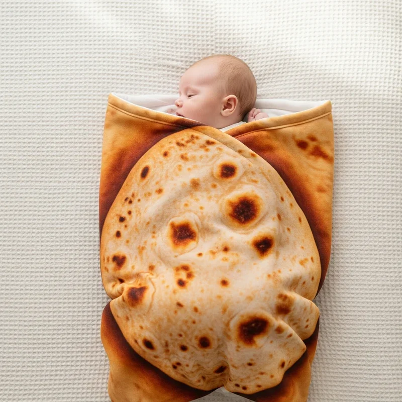 Wrap babies or small pets in this tortilla-printed round blanket that makes them look like an adorable burrito filling, complete with realistic flour tortilla printing on soft fabric. The blanket features incredibly detailed printing that includes the brown spots and texture of an actual tortilla, creating perfect photo opportunities for social media-savvy parents. New parents especially appreciate this gift because it combines functionality with humor during a time when both are desperately needed in their sleep-deprived lives. The blanket is made from hypoallergenic, baby-safe materials that are gentle on sensitive skin while being machine washable for those inevitable messes. Pet owners have also discovered that small dogs and cats make equally adorable burrito subjects, expanding the gift's appeal beyond just human babies. The blanket is generously sized to grow with the child, ensuring years of use from newborn swaddling to toddler nap time comfort.