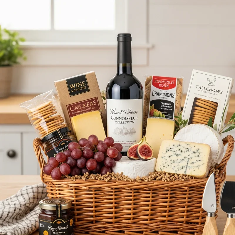 Elevate her next dinner party or quiet evening with this sophisticated basket celebrating the art of wine and cheese pairing. Select two or three quality bottles of wine, including a crisp white, bold red, and perhaps a sparkling option for celebrations. Pair these with artisanal cheeses, gourmet crackers, fig jam, honey, mixed nuts, and dried fruits that complement the wine selections perfectly. Include wine accessories like a corkscrew, aerator, cheese knives, and elegant wine charms. Add some dark chocolate and olives to round out this refined gift that shows you appreciate her sophisticated palate and love for entertaining guests in style.